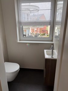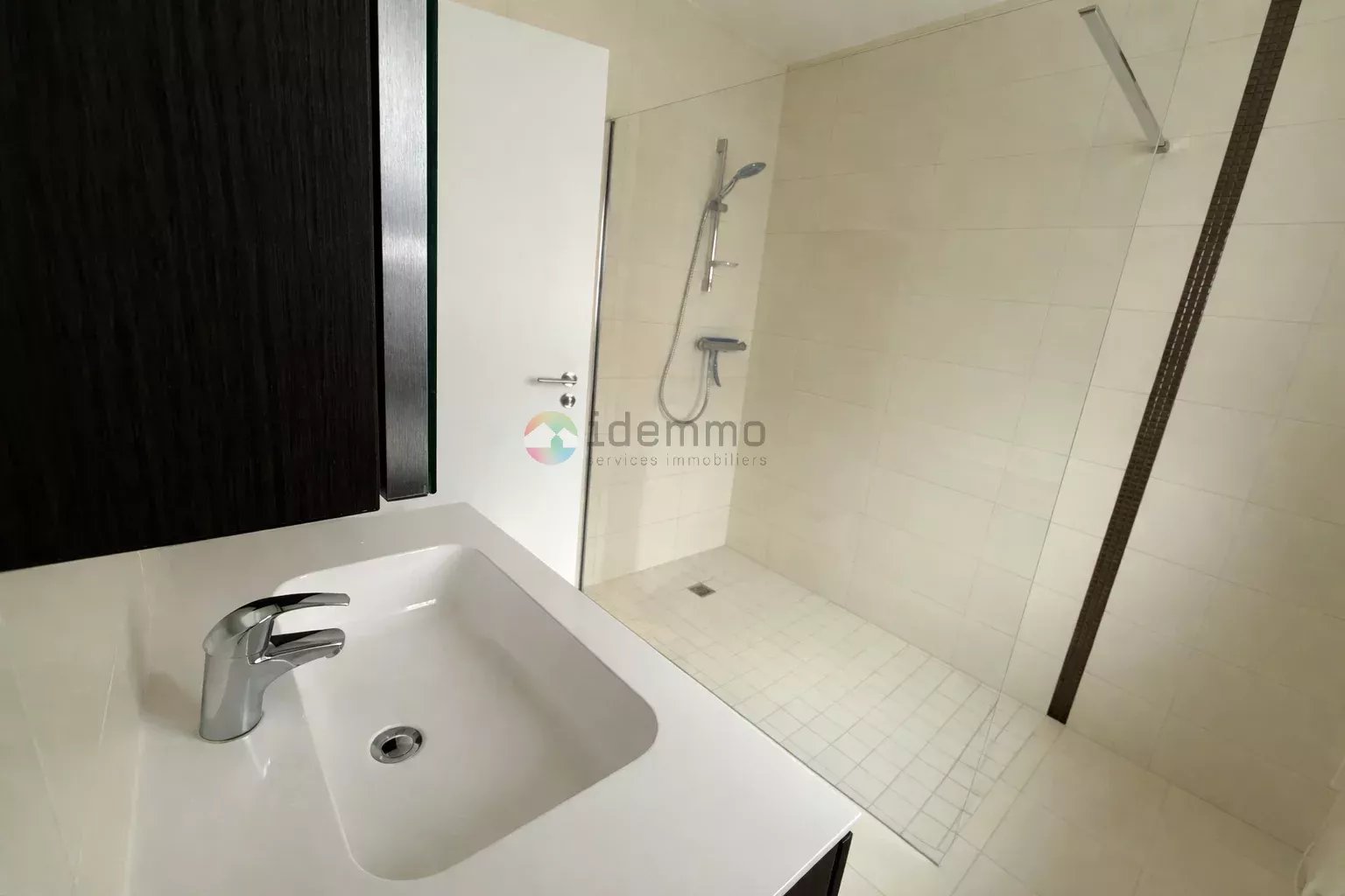 L’appartement dispose également d’une chambre spacieuse, d’une salle de douche moderne, ainsi que de WC séparés, apportant un confort supplémentaire au quotidien.